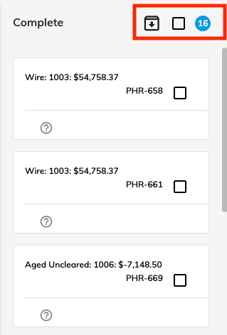You may notice it takes longer for the kanban screen to load if there are a significant number of cards on kanban board. In order to speed up the screen load time, you can archive the items in the Complete column. Check the box and click the down arrow to archive all of the cards in the Complete column. You can still search Archived cards if you need to review information in an archived card.