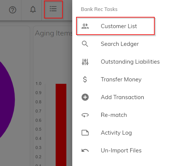 You can access the Customer list from the Import Files tab of the Bank Reconciliation workflow or from the Reconciliation Tasks menu.