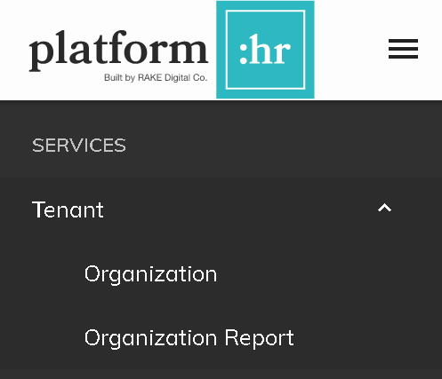 Tenant Administration Tenant Administration Users with administrative rights will see Tenant Administration in their navigation pane. The submenu items are Organization and Organization Report.